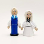 素朴な木地人形に、可愛い手をつけた船乗りのカップルです。